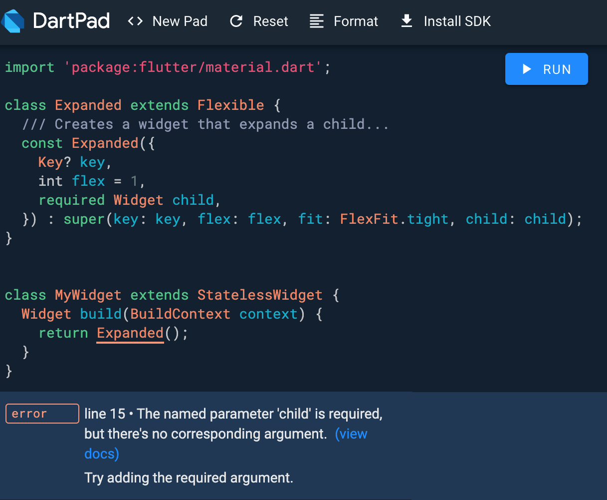 (which happens a lot in Flutter widget APIs) and the caller forgets to provide the argument, then an analysis error occurs: