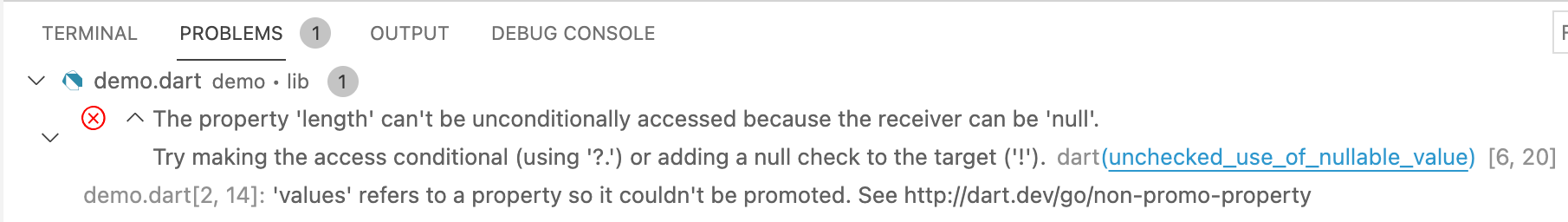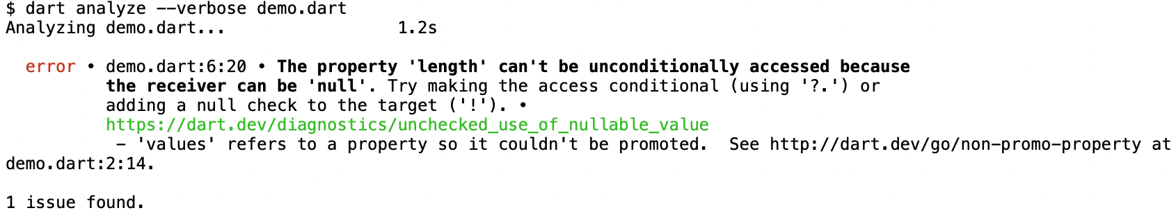 If you find diagnostics that are still hard to understand — because the message isn’t clear, it needs a context message to help you find other related code locations, or the documentation isn’t complete enough — please let us know by creating a dart-lang/sdk issue. We’re always interested in improving the tools.